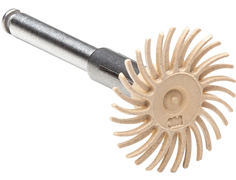 Finition et polissage de toutes les surfaces en 2 étapes/ 2 grains. Sof-Lex roue de finition (roue de couleur beige) et Sof-Lex roue de polissage (roue de couleur blanche). Forme unique de roue spirale. Recours inutile à une pâte abrasive ou à un spray d’eau. Utilisation simple grâce au mandrin breveté Pop-On™. Utilisé sur une pièce à main à vitesse lente, recommandé à 10 000 – 20 000 tr/min.